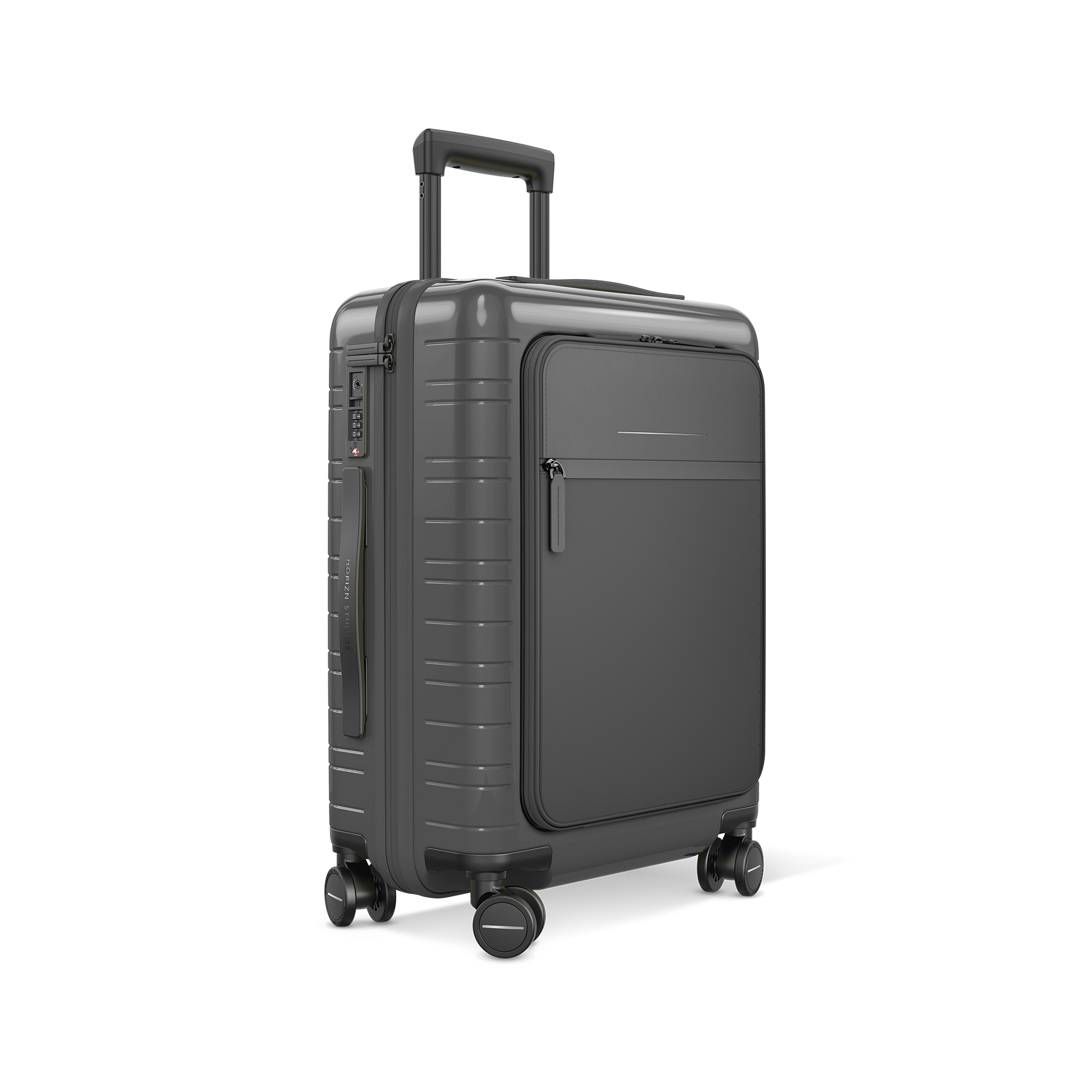 • Hard shell featuring premium German polycarbonate and high-quality nylon front pocket