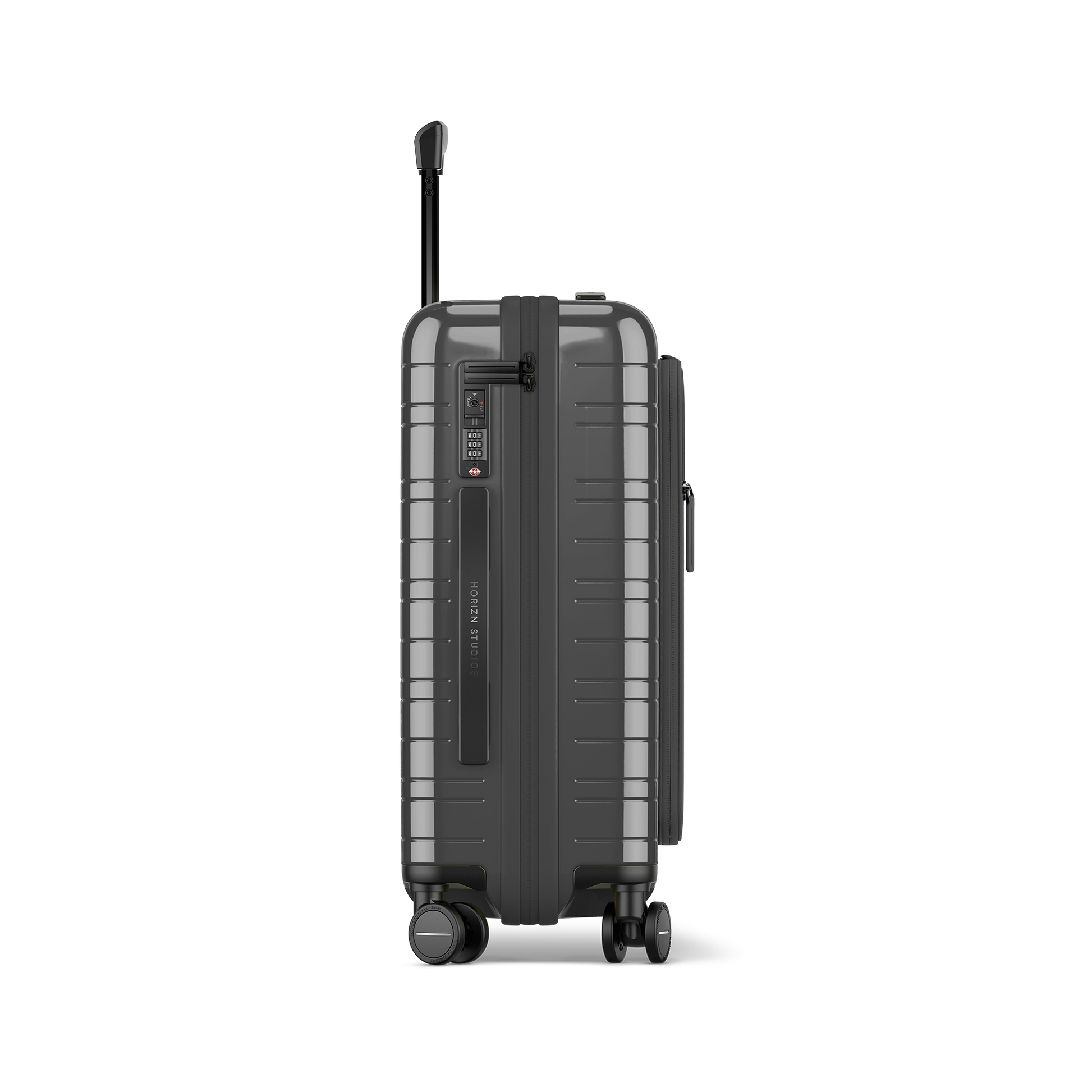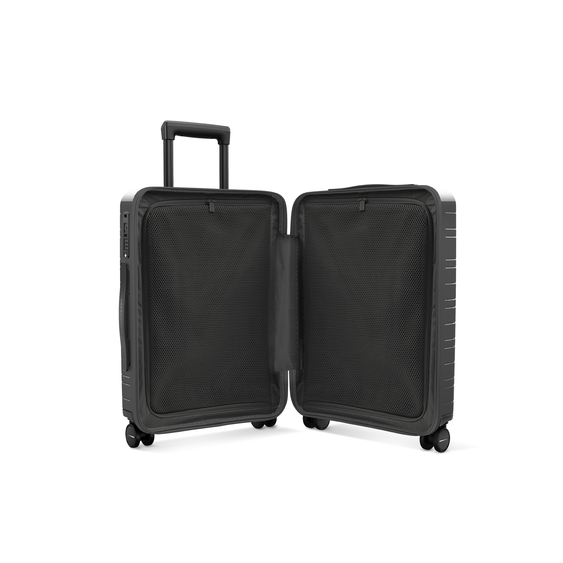 This luggage features a premium polycarbonate hard shell, a front pocket made of Hi-Core and nylon, and recycled polyester lining. Our luggage production is 99% waste-free.